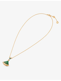 PRODUCT DETAILS - Bvlgari 18ct rose-gold, 0.28 brilliant-cut diamond and malachite pendant necklace - 100% 18ct rose gold - Diamonds - Lobster-clasp fastening - Adjustable chain, fan-shaped pendant, one central diamond, pave diamonds, polished finish - Carat weight: 0.28 - Carat cut: round brilliant - Carat clarity: IF-VS - Carat colour: D-G - Chain type: cable chain - Chain length: 41cm-43cm - Made in Italy - Please refer to the brand’s care instructions - Bvlgari prides itself on providing excellent customer service. This includes contacting customers to offer after-sales care and share details about its brand and products. As such, when you order a Bulgari product from us, your details will be passed onto Bvlgari so that it can provide these services to you. Ref: R03984056