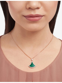 PRODUCT DETAILS - Bvlgari 18ct rose-gold, 0.5ct brilliant-cut diamond and malachite pendant necklace - 100% rose gold - Lobster-clasp fastening - Adjustable chain, fan-shape pendant, polished finish - Made in Italy - Carat weight: 0.5ct - Carat cut: round brilliant - Carat clarity: IF-VS - Carat colour: D-G - Chain type: cable chain - Chain length: 41cm-43cm - Please refer to the brand’s care instructions - Bvlgari prides itself on providing excellent customer service. This includes contacting customers to offer after-sales care and share details about its brand and products. As such, when you order a Bulgari product from us, your details will be passed onto Bvlgari so that it can provide these services to you. Ref: R03984057