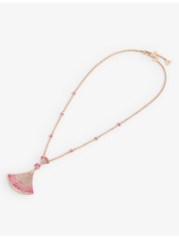 PRODUCT DETAILS - Bvlgari 18ct rose-gold, 3.53ct pink sapphire and 1.01ct diamond pendant necklace - 100% 18ct rose gold - Pink sapphires, diamonds - Lobster-claw clasp - Cable chain, central pendant, pave stones - Carat weight: 3.53ct, 1.01ct - Carat cut: round brilliant - Carat clarity: IF-VS - Carat colour: D-G - Made in Italy - Two-year manufacturer's warranty - Bvlgari prides itself on providing excellent customer service. This includes contacting customers to offer after-sales care and share details about its brand and products. As such, when you order a Bvlgari product from us, your details will be passed onto Bvlgari so that it can provide these services to you. - To learn more about this product or for expert styling services, get in touch with our Personal Shopping team Ref: R04212466