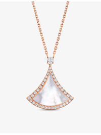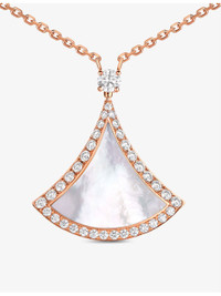 PRODUCT DETAILS - Bvlgari 18ct rose-gold, mother-of-pearl and 0.5ct round brilliant-cut diamond necklace - 100% 18ct rose gold - Mother of pearl, diamonds - Fan-shaped pendant, diamond encrusted, polished - Made in Italy - Carat weight: 0.5ct - Carat cut: round brilliant - Chain type: cable chain - Chain length: 41-43cm - Please use a soft, dry polishing cloth - Bvlgari prides itself on providing excellent customer service. This includes contacting customers to offer after-sales care and share details about its brand and products. As such, when you order a Bvlgari product from us, your details will be passed onto Bvlgari so that it can provide these services to you. Ref: R03993292