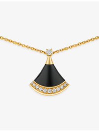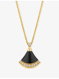 PRODUCT DETAILS - Bvlgari 18ct yellow-gold, black onyx and 0.10ct brilliant-cut diamond necklace - 100% 18ct yellow gold - 1 brilliant-cut diamond - 1 black onyx - 11 pave diamonds - Lobster-clasp fastening - Fan-shaped pendant, diamond encrusted, black onyx stone, polished - Carat weight: 0.10ct - Carat cut: round brilliant - Chain type: cable chain - Chain length: 41-43cm - Made in Italy - Please use a soft, dry polishing cloth - Two-year international limited warranty - Bvlgari prides itself on providing excellent customer service. This includes contacting customers to offer after-sales care and share details about its brand and products. As such, when you order a Bvlgari product from us, your details will be passed onto Bvlgari so that it can provide these services to you. Ref: R04510642