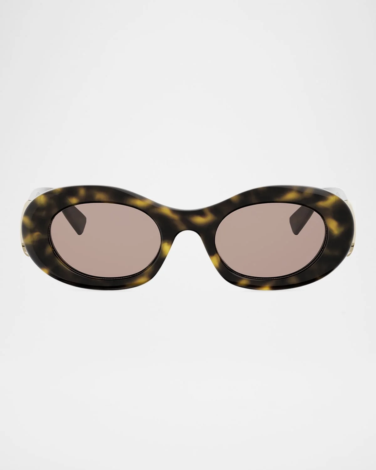 BVLGARI "Divas' Dream" oval sunglasses in tortoiseshell acetate with fanshaped hinges Underlacquer metal logo on temples and lasered logo on lens Lens/bridge/temple (in mm): 5022140 Solid lenses Saddle nose bridge Thin, tapered arms 100% UVA/UVB protection Made in Italy