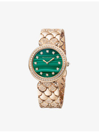 PRODUCT DETAILS - Bvlgari DVP33MALPGD12 Divina 18ct rose-gold and 2.69ct diamond quartz watch - 100% 18ct rose gold - 413 diamonds - Style number: DVP33MALPGD12 - Folding-buckle fastening - Crown set with a diamond, malachite dial, single-spiral bracelet, calibre B043 - Carat: 2.69ct - Cut: round brilliant - Dial: round - Glass: synthetic sapphire - Case diameter: 33mm - Water resistance: more than 3 bar / 3 atm / 30m - Made in Switzerland - Please refer to the brand’s care instructions - 5-year warranty - Bvlgari prides itself on providing excellent customer service. This includes contacting customers to offer after-sales care and share details about its brand and products. As such, when you order a Bvlgari product from us, your details will be passed onto Bvlgari so that it can provide these services to you Ref: R04319482
