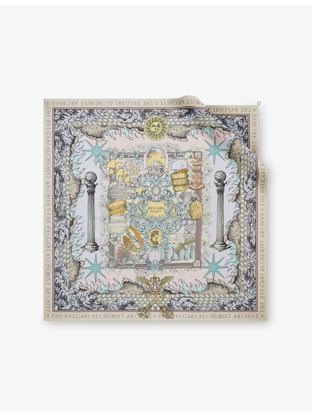 PRODUCT DETAILS - Bvlgari silk scarf - 100% silk - Self-tie fastening - Bvlgari Bvlgari metal pendant, graphic print celebrating motifs from Bvlgari Archives, branded border, handmade - Length 90cm, width 90cm - Dry clean only - Made in Italy - Bvlgari prides itself on providing excellent customer service. This includes contacting customers to offer after-sales care and share details about its brand and products. As such, when you order a Bvlgari product from us, your details will be passed onto Bvlgari so that it can provide these services to you. Ref: R04485762