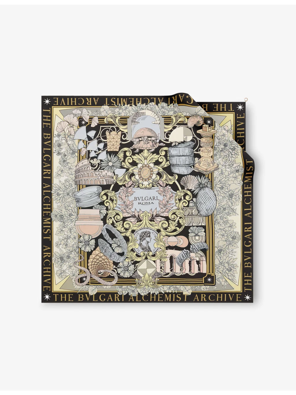 PRODUCT DETAILS - Bvlgari silk scarf - 100% silk - Self-tie fastening - Bvlgari Bvlgari metal pendant, graphic print celebrating motifs from Bvlgari Archives, branded border, handmade - Length 90cm, width 90cm - Dry clean only - Made in Italy - Bvlgari prides itself on providing excellent customer service. This includes contacting customers to offer after-sales care and share details about its brand and products. As such, when you order a Bvlgari product from us, your details will be passed onto Bvlgari so that it can provide these services to you. Ref: R04485754