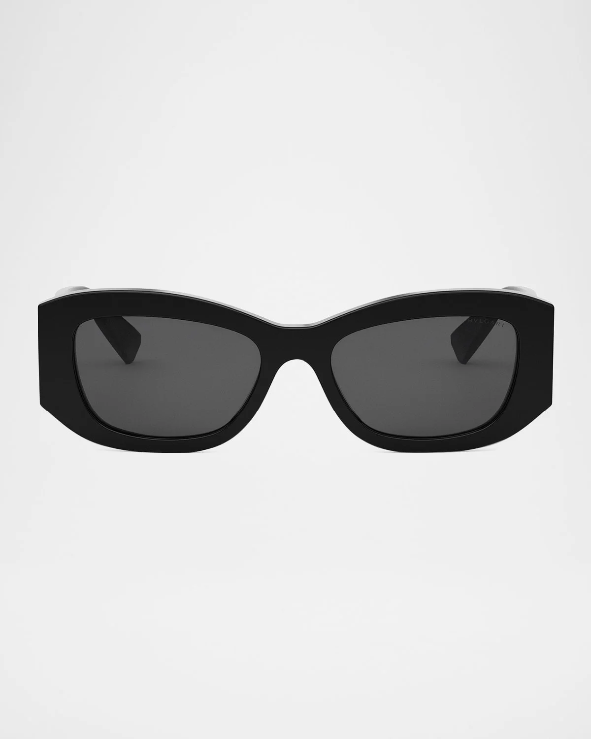 - BVLGARI "Roma" rectangle sunglasses in acetate and nylon with lasered logo metal plaque - Lens/bridge/temple (in mm): 54-18-145 - Solid lenses - Logo on left lens - Saddle nose bridge - Wide, tapered arms - 100% UVA/UVB protection - Made in Italy - Proposition 65 warning for California residents - This product contains perfluoroalkyl and polyfluoroalkyl substances (PFAS). For more information, please visit the manufacturer’s website.