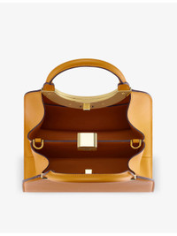 PRODUCT DETAILS - Bvlgari leather top-handle bag - 100% leather - Press-button closure - Engraved brass ornamentation, fixed top handle, full leather lining, tonal lacquering, two internal compartments, central partition, flat pocket - Specialist leather clean - Dimensions: 22.5cm x 18cm x 12.5cm - Made in Italy