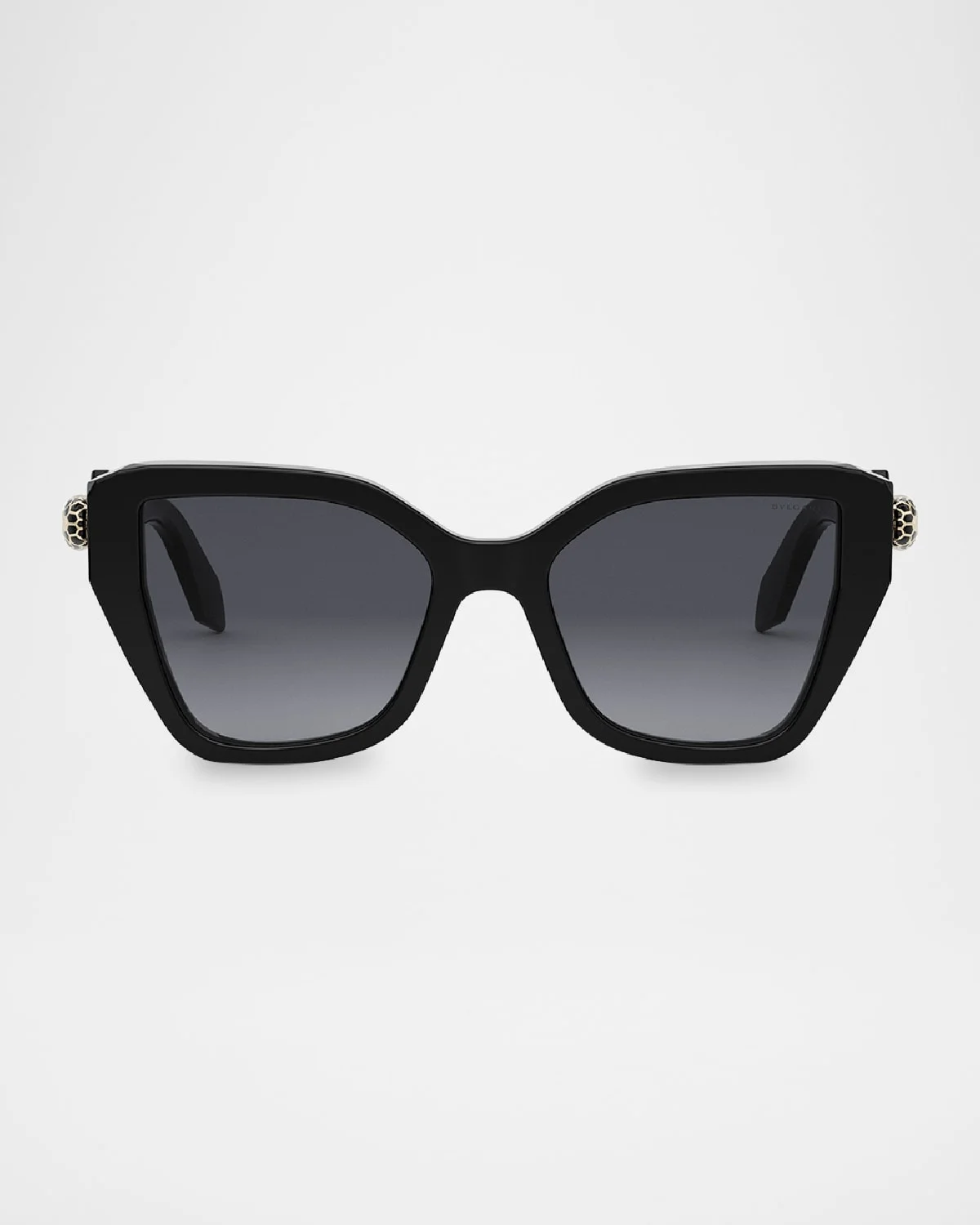 - BVLGARI "Serpenti" butterfly sunglasses in acetate - Under-lacquer metal logo outside on both temples and lasered logo on lens - Lens/bridge/temple (in mm): 53-19-140 - Gradient lenses - Wide, tapered arms - Hand wash - 100% UVA/UVB protection - Made in Italy - Proposition 65 warning for California residents - This product contains perfluoroalkyl and polyfluoroalkyl substances (PFAS). For more information, please visit the manufacturer’s website.