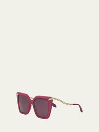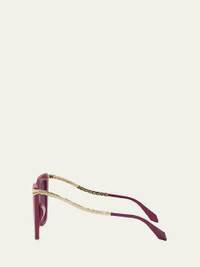 BVLGARI "BV40002IW" butterfly sunglasses in acetate, metal, and nylon/polyamide Oversized rectangular shape with sinuous and sleek Serpenti temples, for a recognizable Bvlgari style Lens/bridge/temple (in mm): 5518140 Solid lenses; logo on corner Saddle nose bridge Thin, wavy arms Hand wash 100% UVA/UVB protection Made in Italy