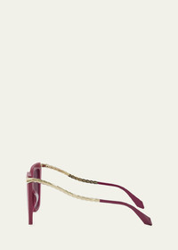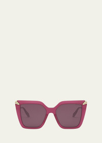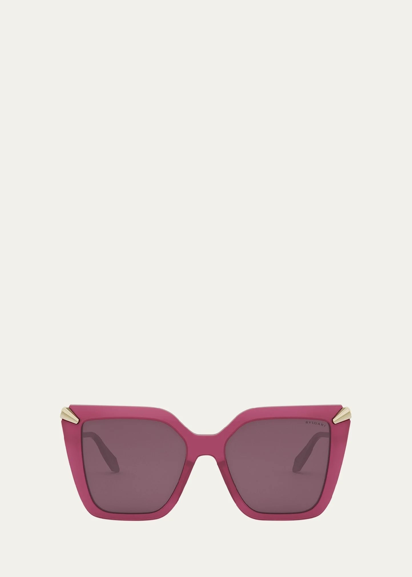 BVLGARI "BV40002IW" butterfly sunglasses in acetate, metal, and nylon/polyamide Oversized rectangular shape with sinuous and sleek Serpenti temples, for a recognizable Bvlgari style Lens/bridge/temple (in mm): 55-18-140 Solid lenses; logo on corner Saddle nose bridge Thin, wavy arms Hand wash 100% UVA/UVB protection Made in Italy Proposition 65 warning for California residents Online Inquiries: BGS21_D4V0V| Store Inquiries: #4720621