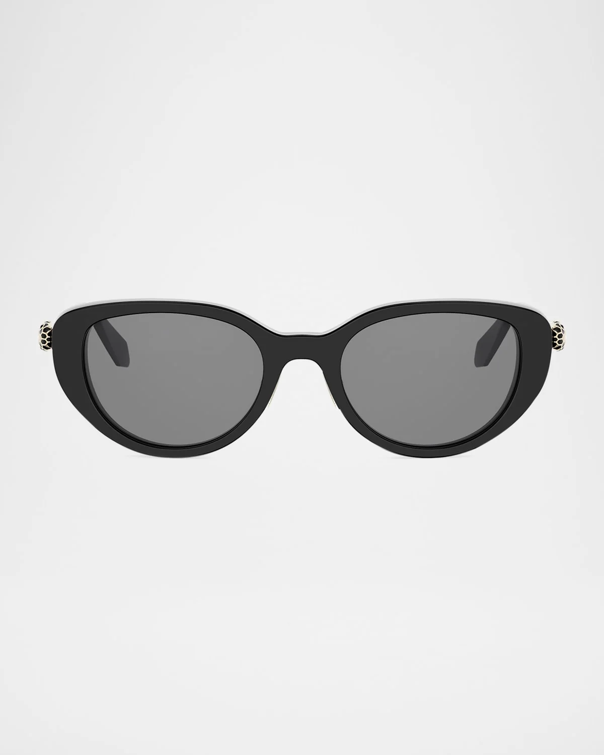 BVLGARI "Serpenti Forever" oval sunglasses embellished with snakehead accents near the hinges Eye/bridge/temple (in mm): 5220140 Monochromatic lenses Saddle nose bridge Lasered logo on metal temples Thin, tapered arms 100% UVA/UVB protection Acetate Hand wash Made in Italy