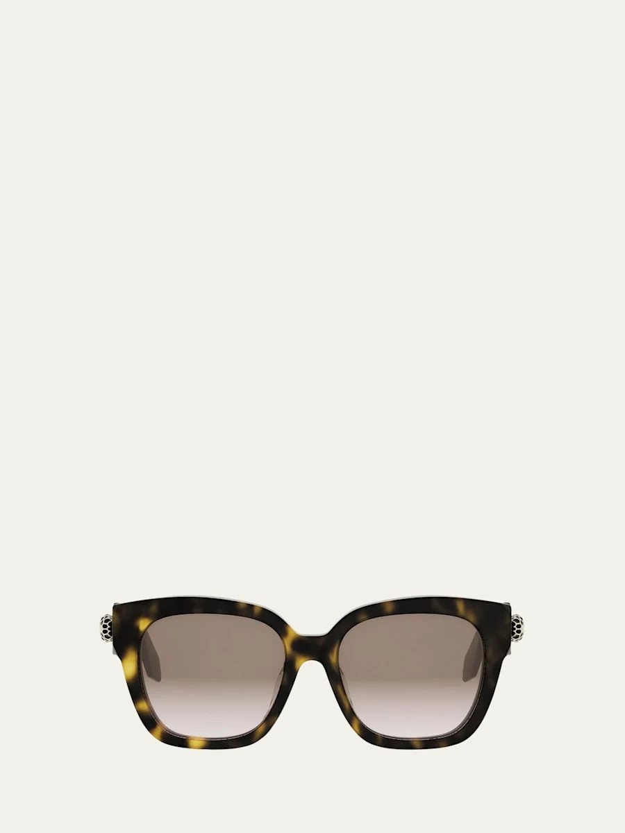 BVLGARI butterfly sunglasses feature oversized frames embellished with a faceted serpent accent on the hinges Eye/bridge/temple (in mm): 5518145 Gradient lenses Saddle nose bridge Logo lettering on sides 100% UVA/UVB protection Acetate Made in Italy