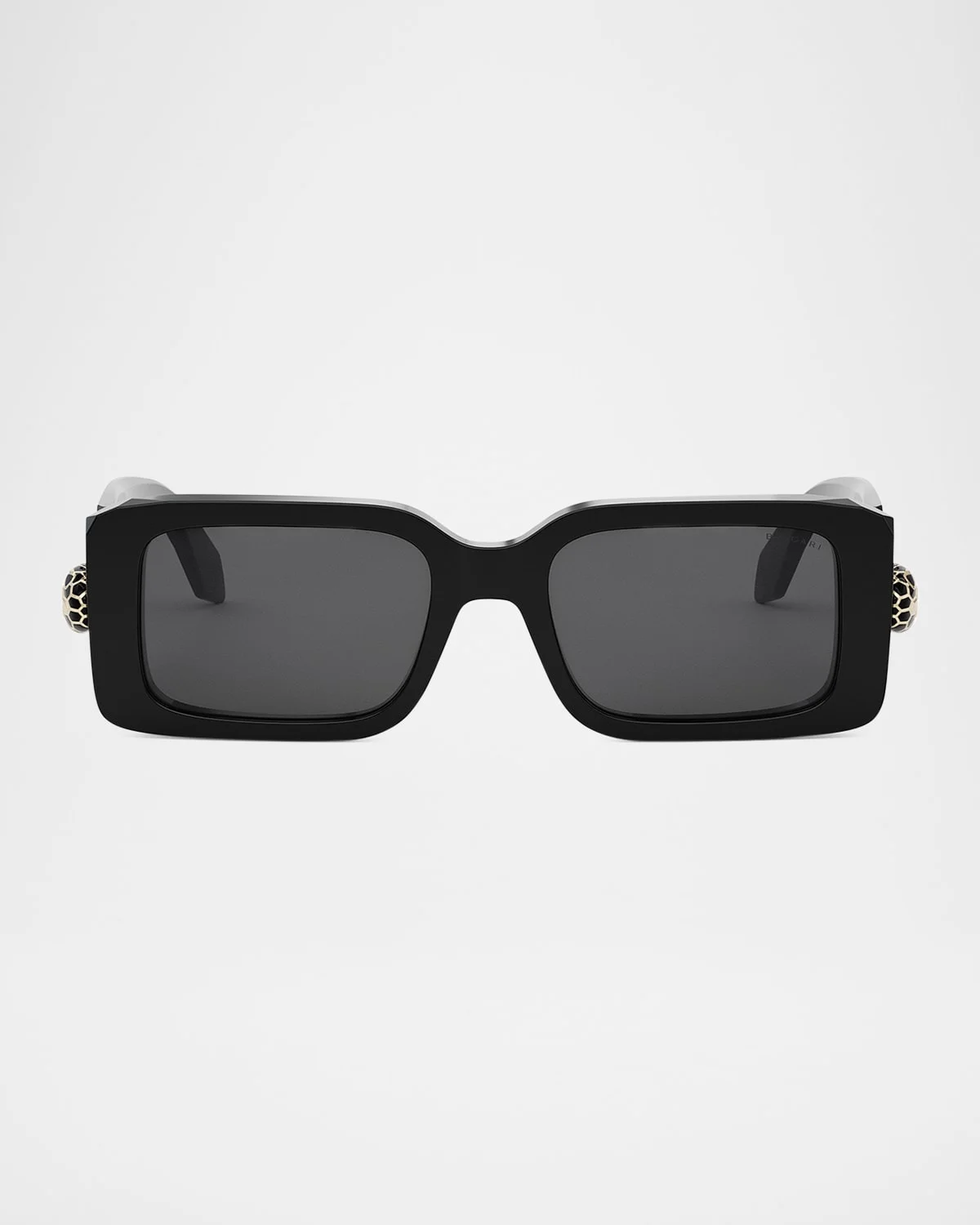 - BVLGARI sunglasses in acetate - Under-lacquer metal logo outside on both temples - Eye/bridge/temple (in mm): 37-19-140 - Eyewear style: Rectangle - Acetate - 100% UVA/UVB protection - Made in Italy - Proposition 65 warning for California residents