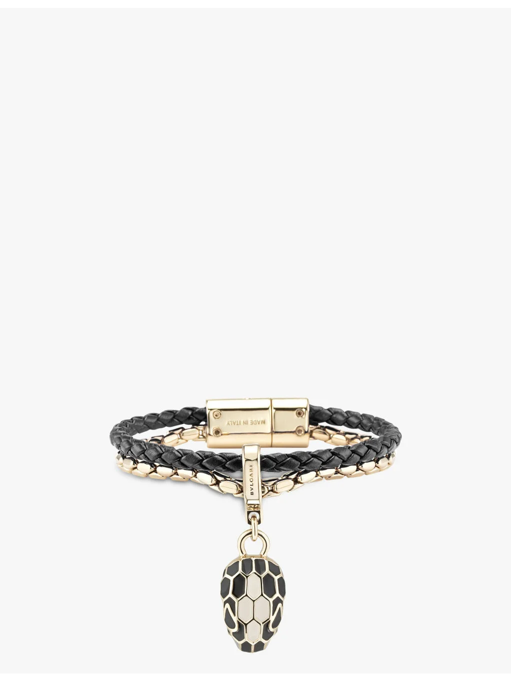 PRODUCT DETAILS - Bvlgari extra-small brass, leather and quartz charm bracelet - 100% brass, 100% calf leather; stones quartz - Magnetic fastening - Braided, sinuous snake body-shaped chain, snakehead charm - Length 14.5cm - Wipe with a clean, dry cloth - Made in Italy - Bvlgari prides itself on providing excellent customer service. This includes contacting customers to offer after-sales care and share details about its brand and products. As such, when you order a Bvlgari product from us, your details will be passed onto Bvlgari so that it can provide these services to you. Ref: R04328580