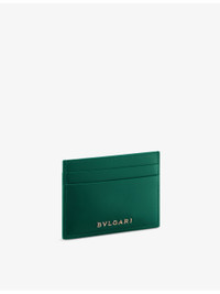 PRODUCT DETAILS - Bvlgari leather card holder - 100% calf leather - Rectangle shape, snakehead embellishment at front, central flat pocket, four external card slots, metal logo at back, light gold-plated brass hardware - Height 10cm, width 7cm, depth 0.5cm - Specialist leather clean - Made in Italy Ref: R04480709