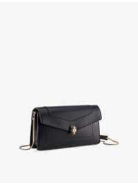 PRODUCT DETAILS - Bvlgari leather chain wallet - 100% leather - Serpenti Forever collection, chain pochette, slim and contemporary look, iconic snakehead magnetic closure, snake body-shaped chain and leather strap, flap closure, single compartment, external pocket on the back, internal zipped pocket, six credit card slots, additional flat pocket, Bvlgari metal logo on the back - Height 11cm, width 20cm, depth 3.5cm - Made in Italy - Specialist clean - Bvlgari prides itself on providing excellent customer service. This includes contacting customers to offer after-sales care and share details about its brand and products. As such, when you order a Bvlgari product from us, your details will be passed onto Bvlgari so that it can provide these services to you. Ref: R04535303