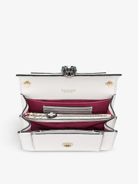 PRODUCT DETAILS - Bvlgari leather cross-body bag - 100% leather - Magnetic fastening - Boxy shape, fold-over closure, serpent head at closure, enamelled scales, exposed panelling, snake chain adjustable shoulder strap, two main compartments, one internal zipped pocket, three internal card pockets, one slip pocket - Dimensions: height 12.5cm, width 19cm, depth 7cm - Specialist leather clean - Bvlgari prides itself on providing excellent customer service. This includes contacting customers to offer after-sales care and share details about its brand and products. As such, when you order a Bvlgari product from us, your details will be passed onto Bvlgari so that it can provide these services to you Ref: R04262159