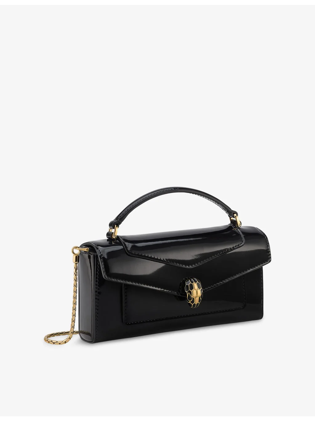PRODUCT DETAILS - Bvlgari leather phone case - 100% leather - Rectangle shape, top handle, chain strap, Serpenti snakehead embellishment at front, gold-toned hardware, flap front, single card slot, metal logo at back, glossy finish - Height 19cm, width 10cm, depth 3.5cm - Specialist leather clean - Made in Italy - Bvlgari prides itself on providing excellent customer service. This includes contacting customers to offer after-sales care and share details about its brand and products. As such, when you order a Bvlgari product from us, your details will be passed onto Bvlgari so that it can provide these services to you. Ref: R04563245