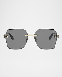BVLGARI "Serpenti Forever" square sunglasses in metal with signature snakehead accents and rimless lenses for a modern effect Lasered logo on metal temples and lens Lens/bridge/temple (in mm): 5815140 Solid lenses Adjustable nose pads Thin, tapered arms Capped earpieces 100% UVA/UVB protection Made in Italy