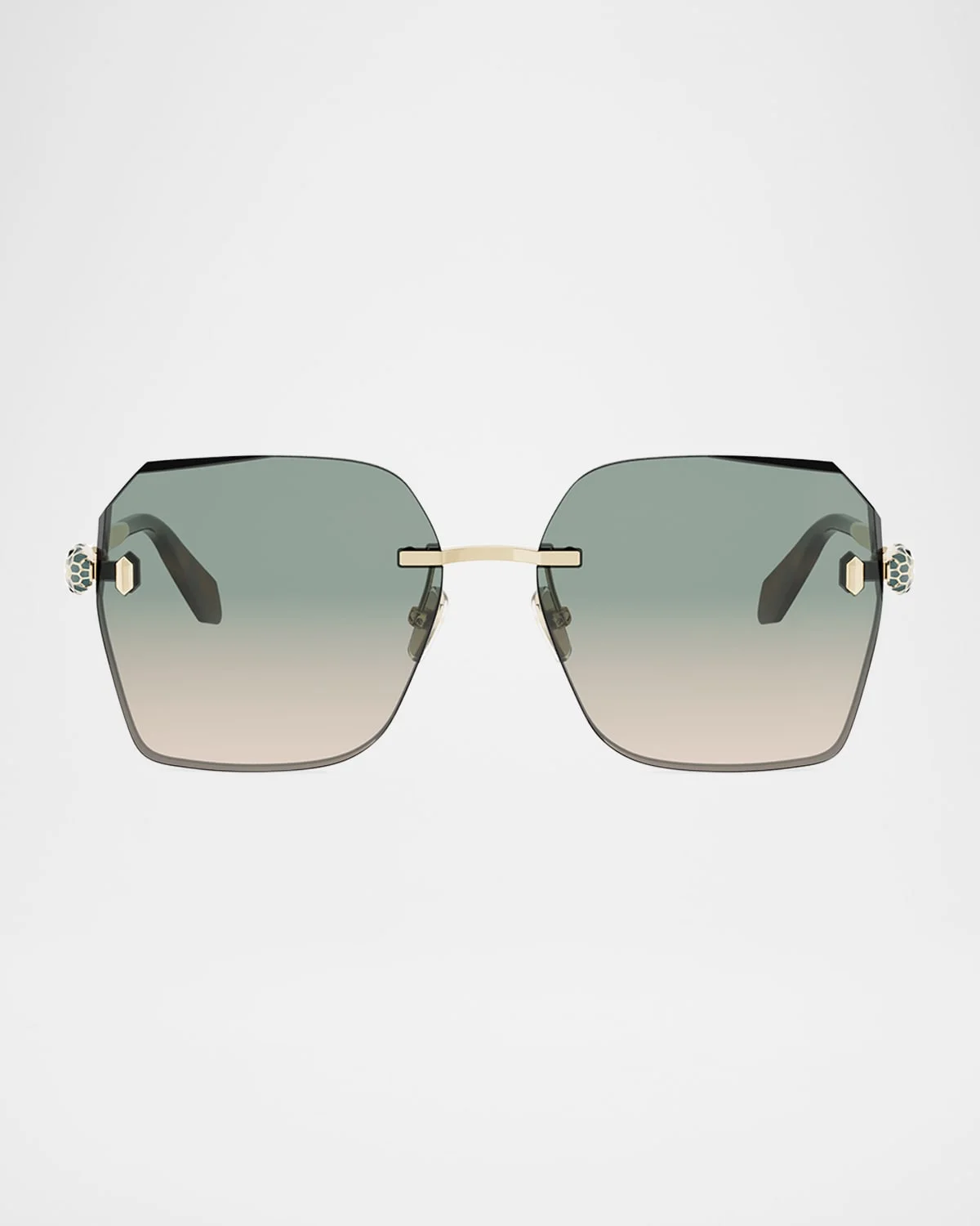 BVLGARI "Serpenti Forever" square rimless metal sunglasses framed by enamelled snakehead accents on the hinges Eye/bridge/temple (in mm): 5815140 Gradient lenses Adjustable nose pads Lasered logo on metal temples and on the lens Thin, tapered arms 100% UVA/UVB protection Metal Hand wash Made in Italy