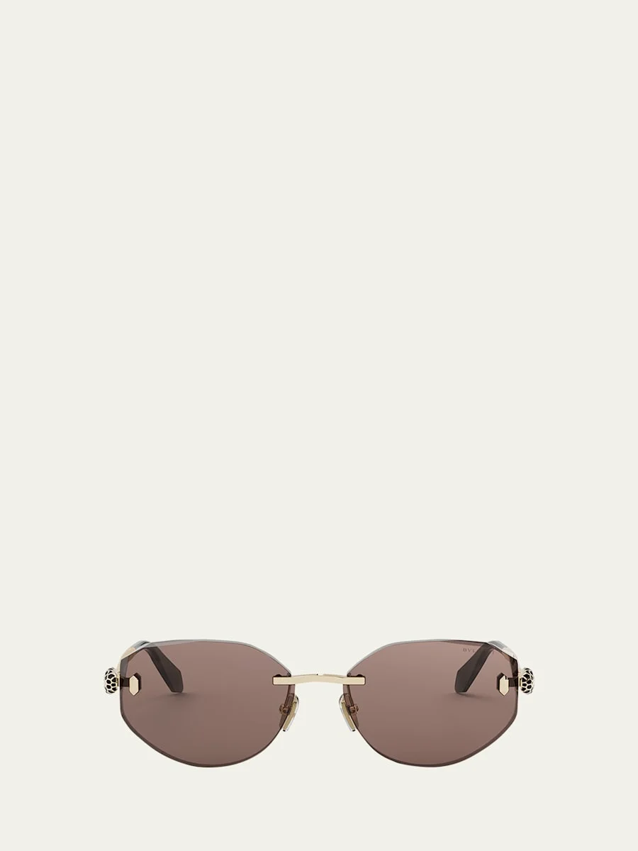 Serpenti Forever Rimless Oval Metal Sunglasses