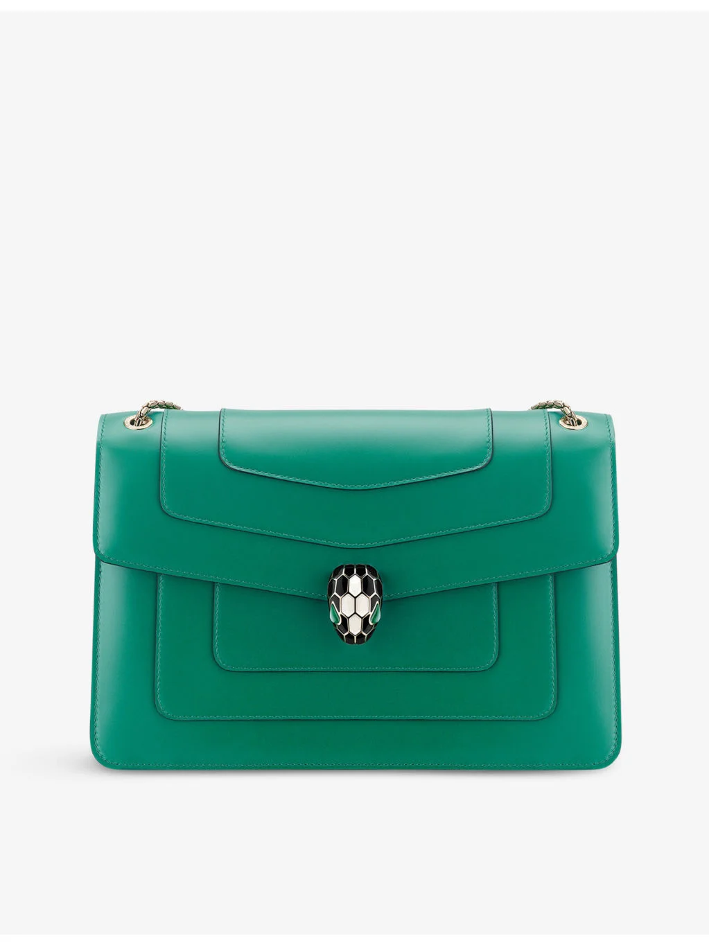 PRODUCT DETAILS - Bvlgari leather cross-body bag - 100% calf leather - Clasp fastening - Adjustable snake body-shaped chain strap, fold-over design, signature Serpenti head closure with enamel detailing, metallic roping across silhouette, two internal compartments, interior slip pocket, exterior slip pocket, slip pocket at back, pocket mirror, fully lined, logo plaque at back - Height 17cm, width 25cm, depth 8cm - Specialist leather clean - Made in Italy - Bvlgari prides itself on providing excellent customer service. This includes contacting customers to offer after-sales care and share details about its brand and products. As such, when you order a Bvlgari product from us, your details will be passed onto Bvlgari so that it can provide these services to you. Ref: R03971947