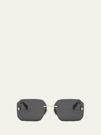 BVLGARI "Serpenti Forever" rimless geometric square sunglasses in metal Lens/bridge/temple (in mm): 62-14-140 Solid lenses; embellished snakeheads Adjustable nose pads Thin, tapered arms Hand wash 100% UVA/UVB protection Made in Italy Proposition 65 warning for California residents Online Inquiries: BGS21_D5E1C| Store Inquiries: #4806997