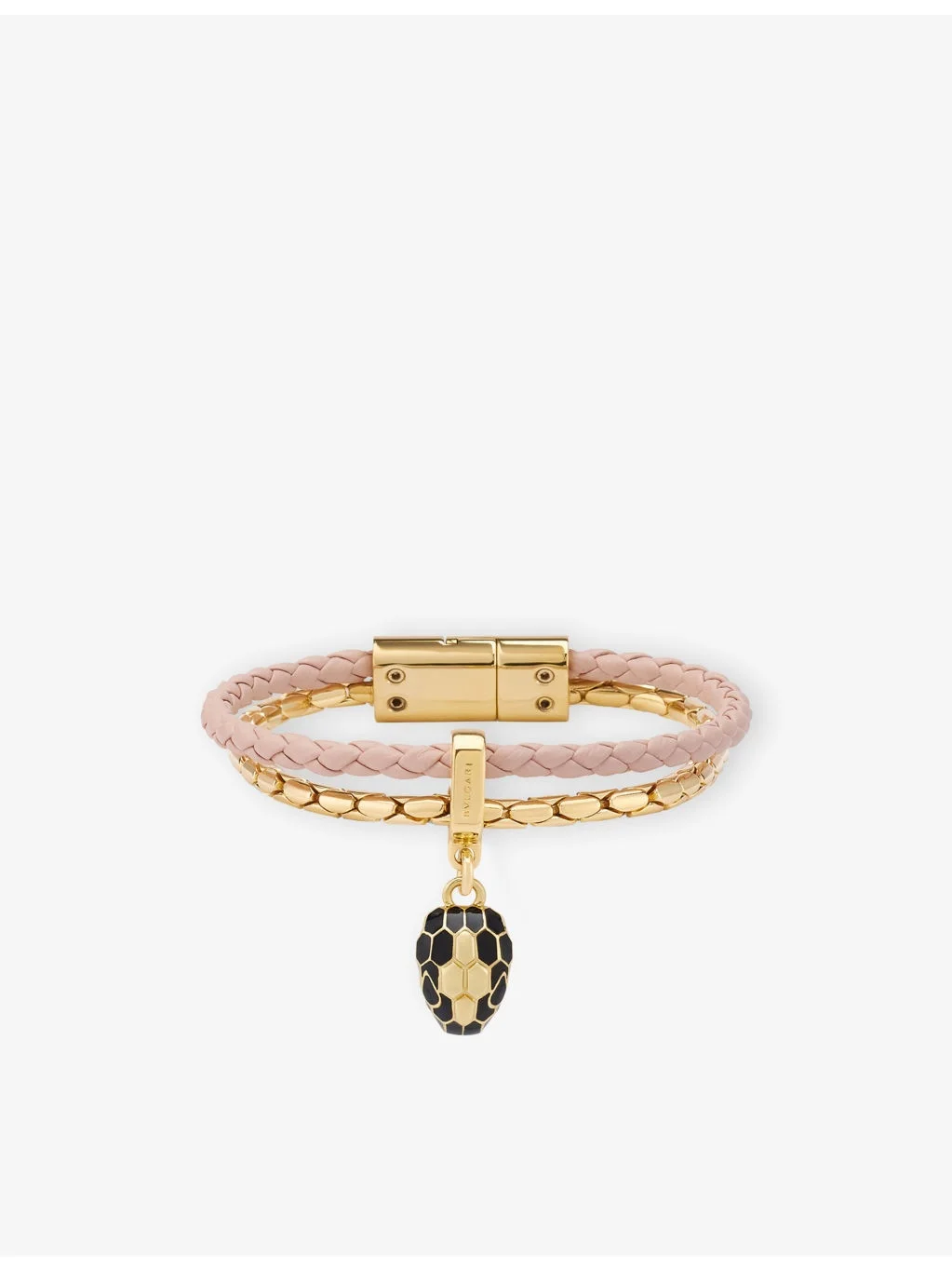 PRODUCT DETAILS - Bulgari yellow gold-plated brass and leather bracelet - 100% brass; plating 100% yellow gold; band 100% leather - Clasp fastening - Magnetic clasp closure - Serpenti Forever collection, braided double band in leather and brass, snakehead charm, enamelled scale and eye detailing - Length 14.5cm - Made in Italy. - Please use a soft, dry polishing cloth - Bvlgari prides itself on providing excellent customer service. This includes contacting customers to offer after-sales care and share details about its brand and products. As such, when you order a Bvlgari product from us, your details will be passed onto Bvlgari so that it can provide these services to you. Ref: R04485784
