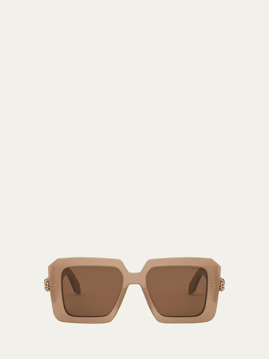 BVLGARI "BV40006IW" square sunglasses in acetate and nylon/polyamide Features iconic snake heads positioned on tall temples with a rectangular front Gradient lenses Saddle nose bridge Logo on temples Wide, tapered arms Hand wash 100% UVA/UVB protection Made in Italy Proposition 65 warning for California residents Online Inquiries: BGS21_D4V0R| Store Inquiries: #4720617