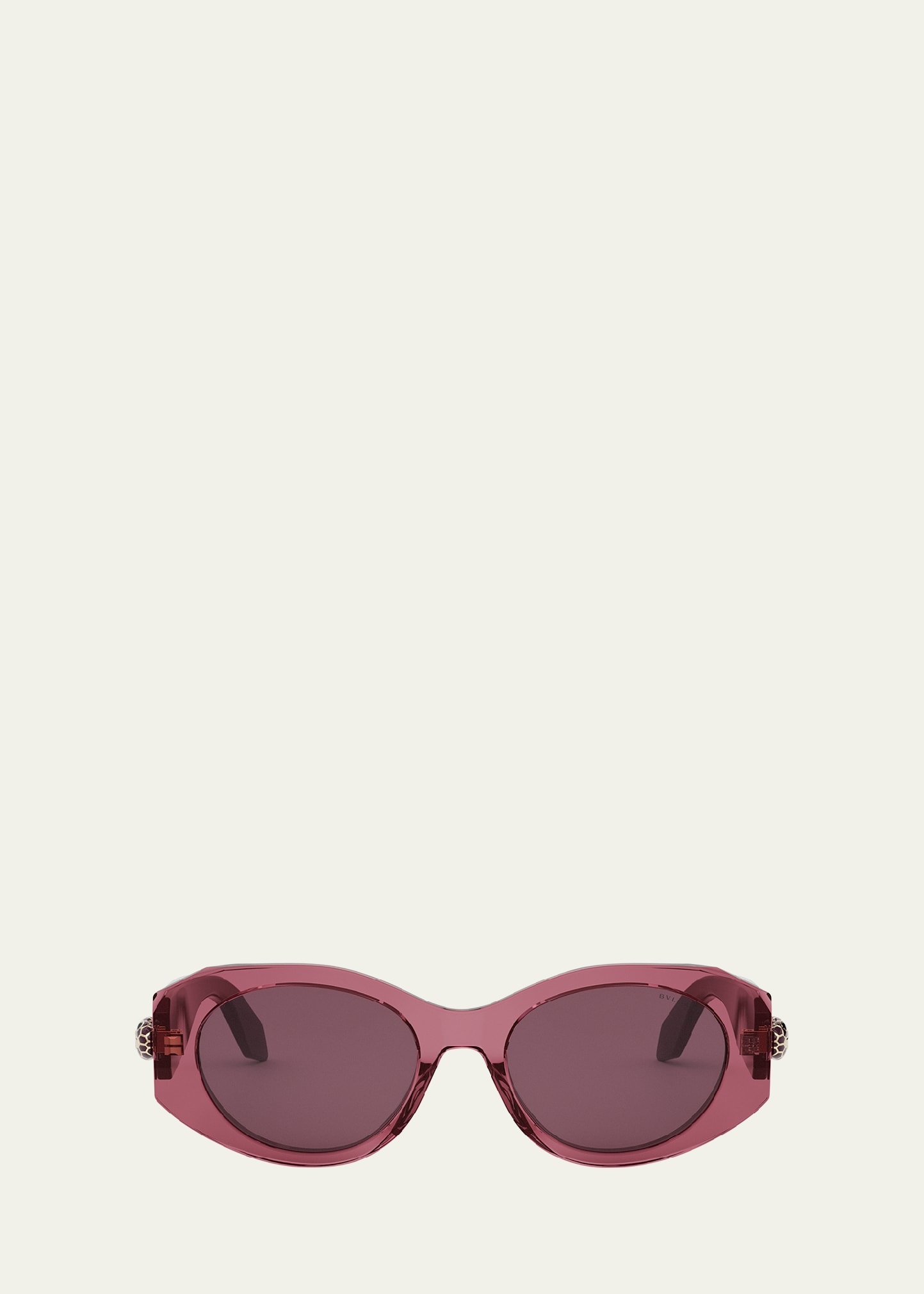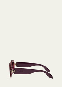 BVLGARI "BV40007IW" oval sunglasses in acetate, metal, and nylon/polyamide Iconic snake head positioned on shorter temples with an eye-catching front shape Lens/bridge/temple (in mm): 63-15-140 Saddle nose bridge Logo on temples Wide, tapered arms Hand wash 100% UVA/UVB protection Made in Italy Proposition 65 warning for California residents Online Inquiries: BGS21_D5E16| Store Inquiries: #4720622