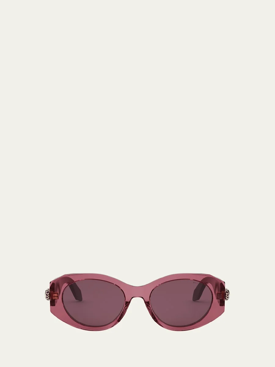 BVLGARI "BV40007IW" oval sunglasses in acetate, metal, and nylon/polyamide Iconic snake head positioned on shorter temples with an eyecatching front shape Lens/bridge/temple (in mm): 6315140 Saddle nose bridge Logo on temples Wide, tapered arms Hand wash 100% UVA/UVB protection Made in Italy