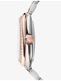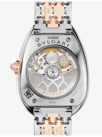 PRODUCT DETAILS - Bulgari 18ct rose gold, diamond and stainless-steel automatic watch - Case material: 100% stainless-steel - Crown: 100% 18ct rose gold set with a cabochon-cut pink rubellite - Strap: 100% 18ct rose gold, stainless-steel - Bezel: 100% 18ct rose gold bezel set with 36 round brilliant-cut diamonds - Style Number: 7612902156148 - Movement type: automatic - Fastening: folding buckle - Dial: white opaline dial - Glass: synthetic sapphire - Stones: 36 round brilliant-cut diamonds, cabochon-cut pink rubellite - Calibre: Lady Solotempo BVS 100 - Power reserve: 50H - Case dimensions: 34mm - Case thickness: 3.9mm - Technical details: transparent case back, hours and minutes functions - Water resistance: 30m - Warranty: 5 years - Made in: Switzerland - Care: please refer to the brand's instructions - Bvlgari prides itself on providing excellent customer service. This includes contacting customers to offer after-sales care and share details about its brand and products. As such, when you order a Bvlgari product from us, your details will be passed onto Bvlgari so that it can provide these services to you. Ref: R04550075