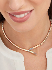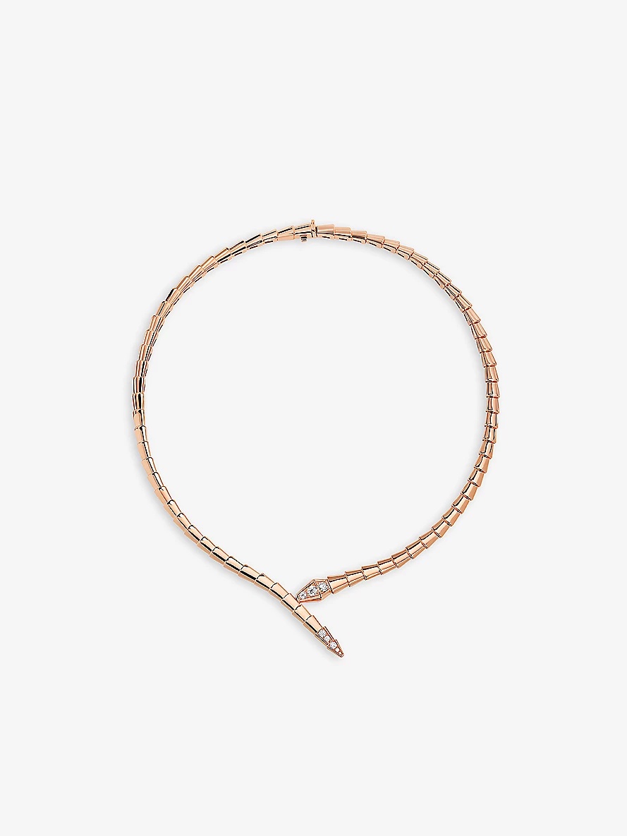 PRODUCT DETAILS - Bvlgari 18ct rose-gold and 0.41ct brilliant-cut diamond necklace - 100% 18ct rose gold - Diamonds - Slips on - Coiled snake design, pave setting, polished finish - Made in Italy - Carat weight: 0.41ct - Carat cut: round brilliant - Carat clarity: IF-VS - Carat colour: D-G - Please refer to the brand’s care instructions - Bvlgari prides itself on providing excellent customer service. This includes contacting customers to offer after-sales care and share details about its brand and products. As such, when you order a Bvlgari product from us, your details will be passed onto Bvlgari so that it can provide these services to you. - To learn more about this product or for expert styling services, get in touch with our Personal Shopping team Ref: R03971932