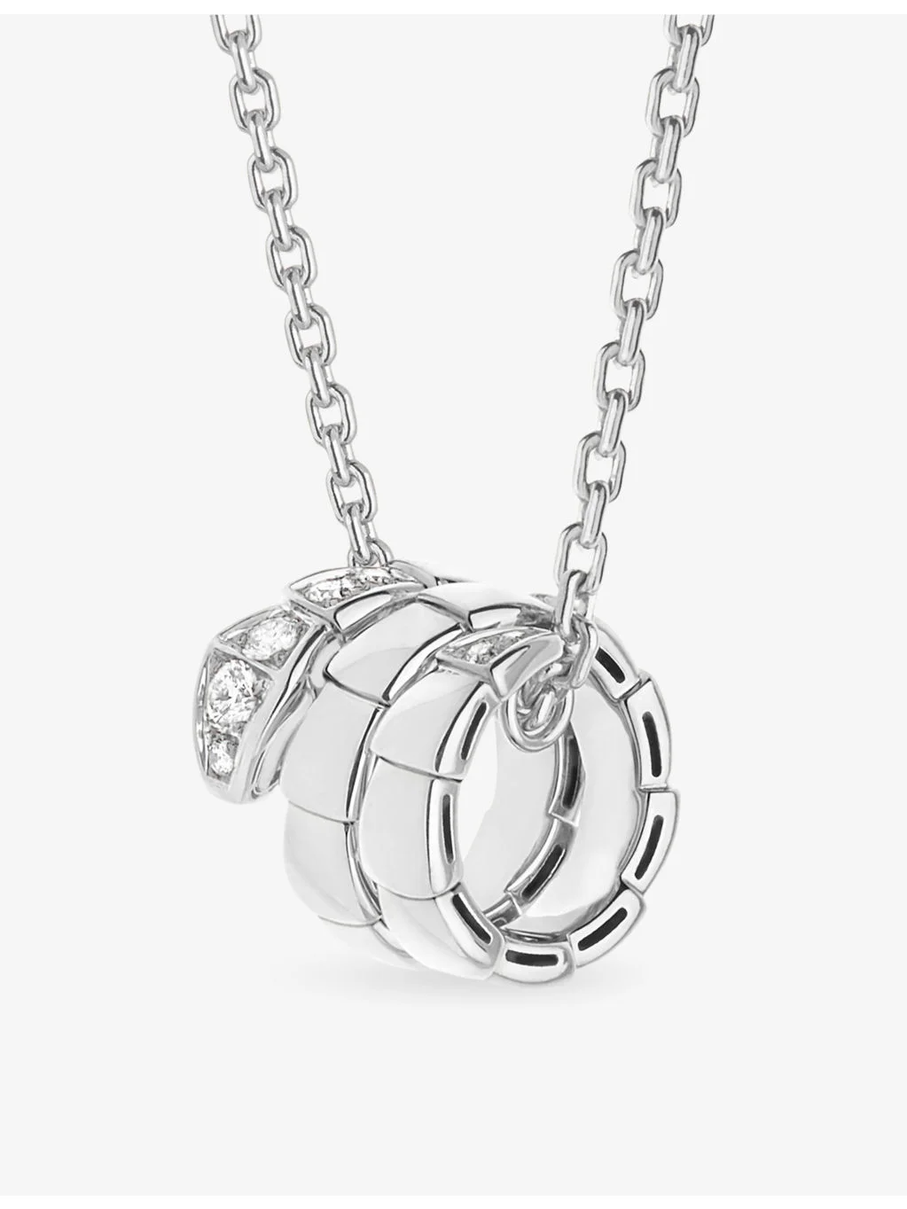 PRODUCT DETAILS - Bvlgari 18ct white gold and 0.13ct diamond pendant necklace - 100% 18ct white gold - Diamonds - Lobster-clasp fastening - Serpenti Viper, demi pave diamonds on the head and tail, polished finish - Carat weight: 0.13ct - Please use a soft, dry polishing cloth - Two-year manufacturer's warranty Ref: R04596287