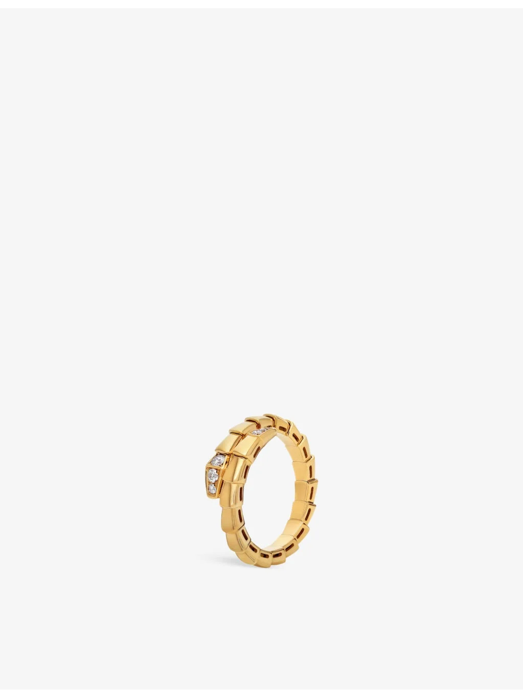 PRODUCT DETAILS - Bvlgari 18ct yellow-gold and 0.14ct brilliant-cut diamond ring - 100% 18ct yellow gold; diamonds - Slip-on fastening - Polished finish, single spiral, demi pave-set stones - Carat weight: 0.14ct - Carat cut: round brilliant - Carat clarity: IF-VS - Carat colour: D-G - Made in Italy - Please use a soft, dry polishing cloth - Two-year manufacturer's warranty - Bvlgari prides itself on providing excellent customer service. This includes contacting customers to offer after-sales care and share details about its brand and products. As such, when you order a Bvlgari product from us, your details will be passed onto Bvlgari so that it can provide these services to you. Ref: R04312673