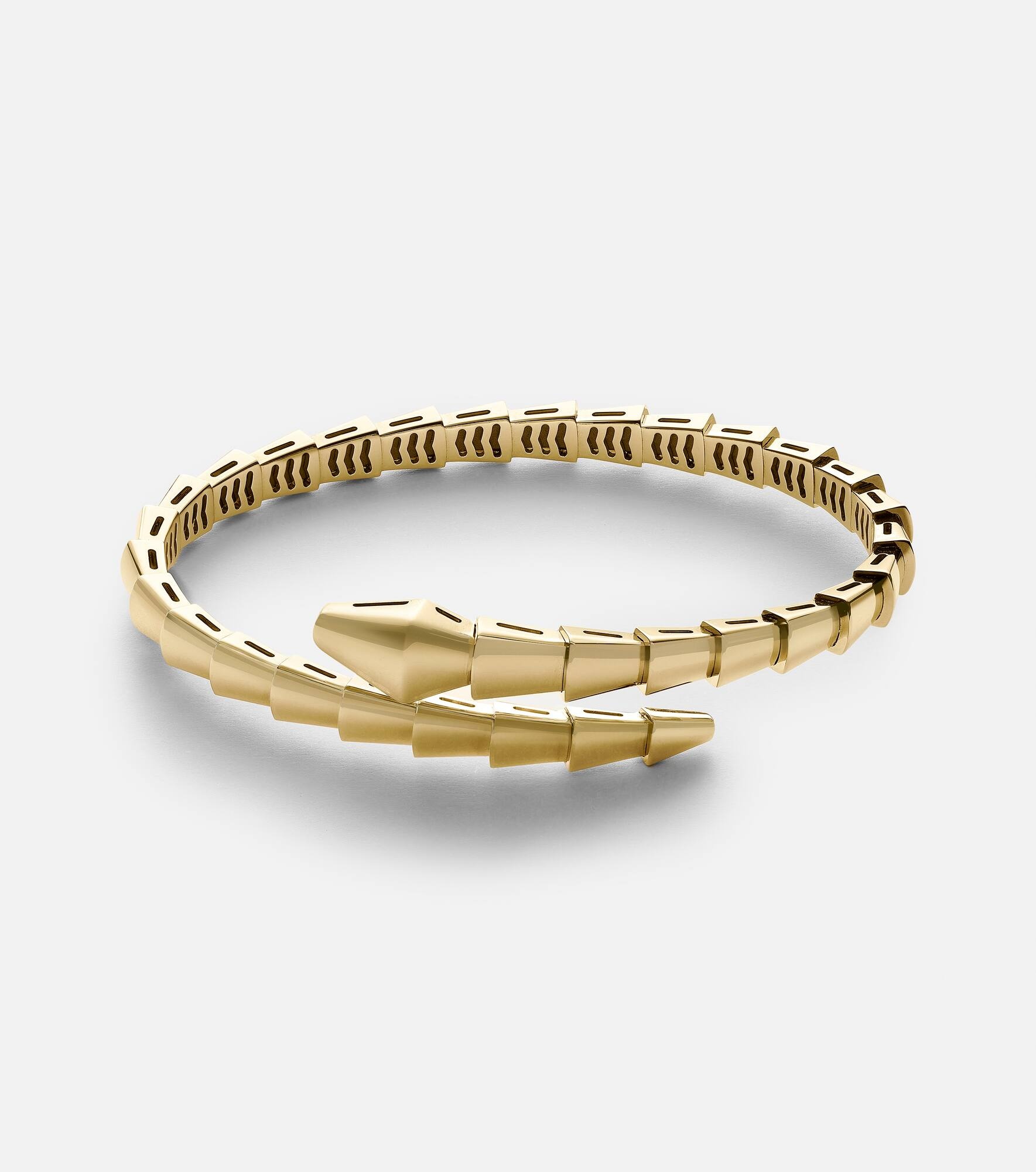 A reinvented emblem of Bvlgari's legacy, the Serpenti Viper bracelet showcases timeless elegance in a distinctively curved silhouette. Crafted from 18-karat gold, the design stands out with stylized scale accents. Product Details - Material: 18kt yellow gold - Made in Italy - Item number: P01030230 Size & Fit - Max. width 12mm-0.45"