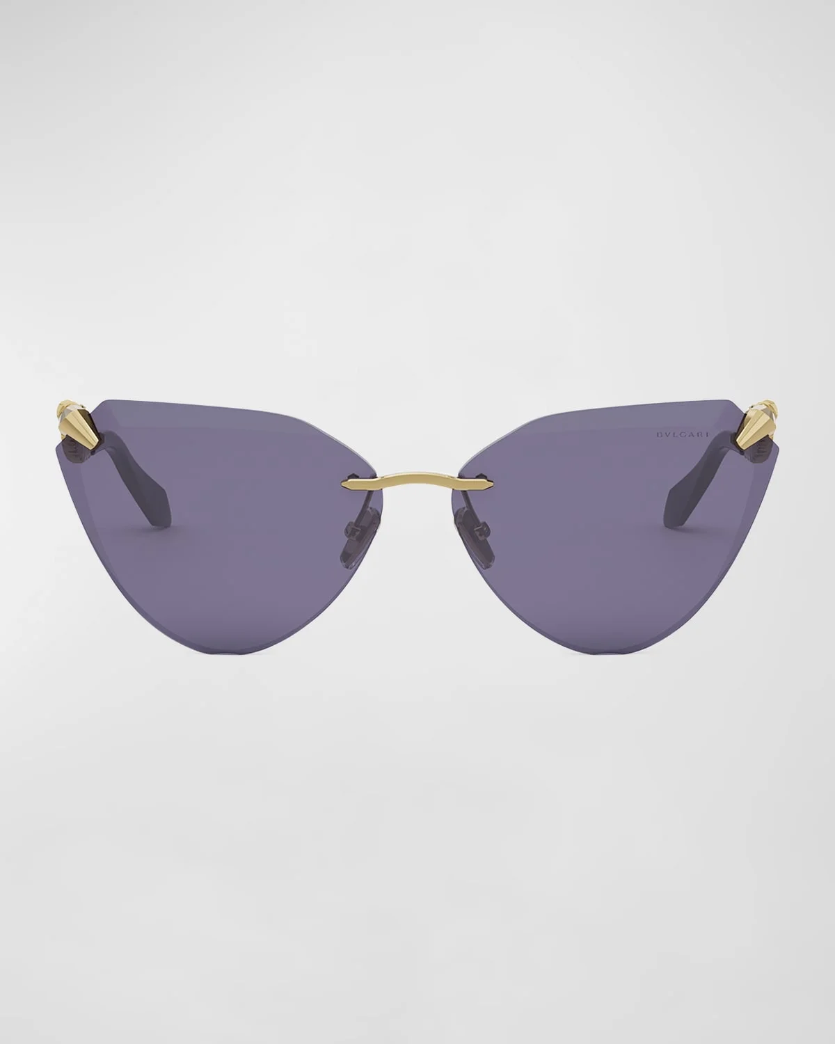 - BVLGARI "Serpenti Viper" rimless beveled cat-eye sunglasses in metal - Lens/bridge/temple (in mm): 65-13-140 - Adjustable nose pads - Snakehead on hinges - Thin, tapered arms - Capped earpieces - Hand wash - 100% UVA/UVB protection - Made in Italy - Proposition 65 warning for California residents