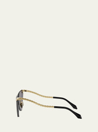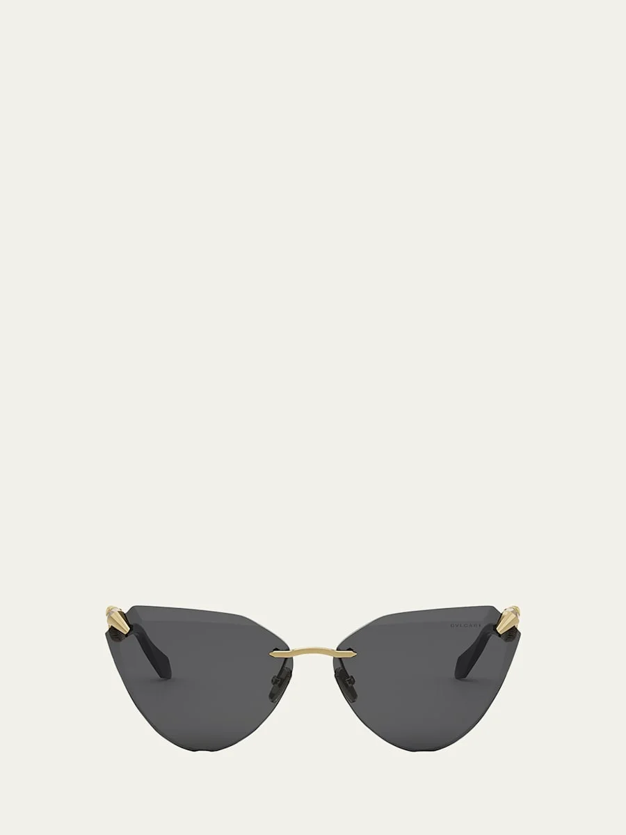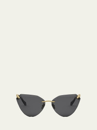 BVLGARI "Serpenti Viper" rimless beveled cat-eye sunglasses in metal Lens/bridge/temple (in mm): 65-13-140 Adjustable nose pads Snakehead on hinges Thin, tapered arms Capped earpieces Hand wash 100% UVA/UVB protection Made in Italy Proposition 65 warning for California residents Online Inquiries: BGS21_D5GCC| Store Inquiries: #4806995
