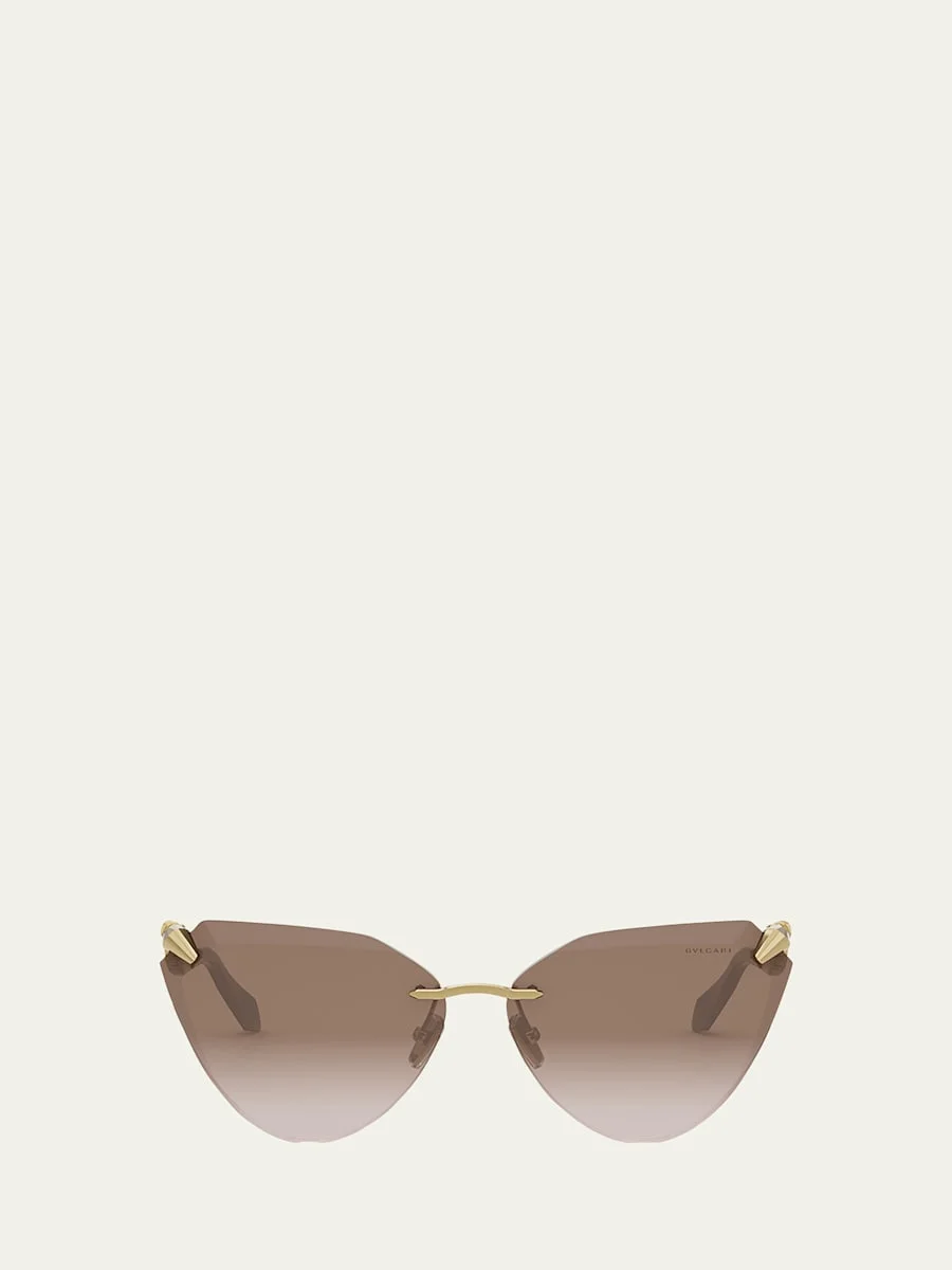 BVLGARI "Serpenti Viper" rimless beveled cat-eye sunglasses in metal Lens/bridge/temple (in mm): 65-13-140 Adjustable nose pads Snakehead on hinges Thin, tapered arms Capped earpieces Hand wash 100% UVA/UVB protection Made in Italy Proposition 65 warning for California residents Online Inquiries: BGS21_D5GCC| Store Inquiries: #4806995