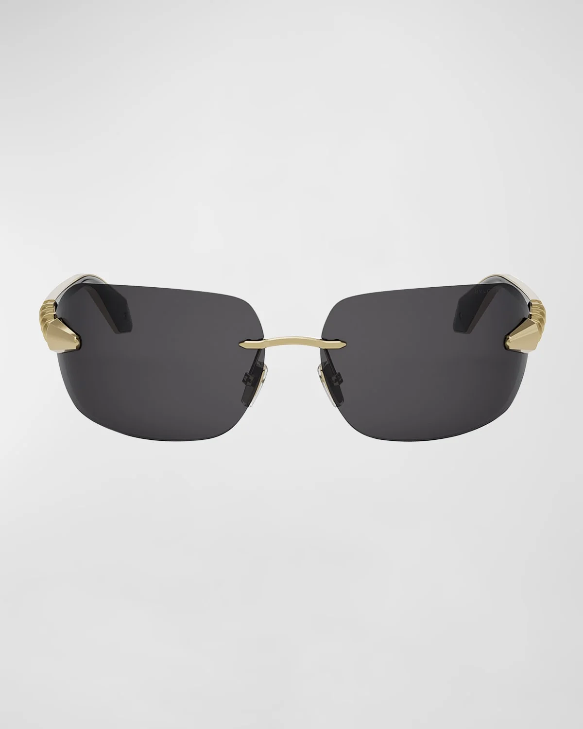 - BVLGARI "Serpenti Viper" rimless wrap sunglasses in metal - Lens/bridge/temple (in mm): 73-15-1115 - Adjustable nose pads - Snakehead on hinges - Thin, tapered arms - Hand wash - 100% UVA/UVB protection - Made in Italy - Proposition 65 warning for California residents