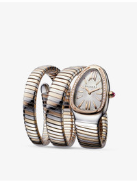 PRODUCT DETAILS - Bvlgari 18ct rose-gold, stainless steel and brilliant-cut diamond quartz watch - 100% 18ct rose gold; 100% stainless steel - Diamonds - Application: Moulds to wrist - Style number: SP35WSPGD.2T - Spiral case, silver opaline dial with guilloche soleil treatment, hand-applied indexes, set with a cabochon-cut rubellite, Roman numeral indexes at 12 and 6, polished finish - Case diameter: 35mm - Made in Switzerland - 2 year warranty - Please refer to the brand's care instructions - Bvlgari prides itself on providing excellent customer service. This includes contacting customers to offer after-sales care and share details about its brand and products. As such, when you order a Bvlgari product from us, your details will be passed onto Bvlgari so that it can provide these services to you. - To learn more about this product or for expert styling services, get in touch with our Personal Shopping team Ref: R03993272