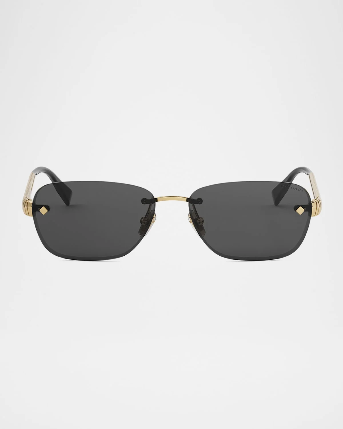 - BVLGARI "Tubogas" rectangular sunglasses in metal - Lens/bridge/temple (in mm): 55-14-135 - Solid lenses; logo on corner - Adjustable nose pads - Tubogas spiral on temples - Thin, tapered arms - Metal - 100% UVA/UVB protection - Made in Italy - Proposition 65 warning for California residents