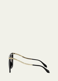 BVLGARI "BV40002IW" butterfly sunglasses in acetate, metal, and nylon/polyamide Oversized rectangular shape with sinuous and sleek Serpenti temples, for a recognizable Bvlgari style Lens/bridge/temple (in mm): 55-18-140 Solid lenses; logo on corner Saddle nose bridge Thin, wavy arms Hand wash 100% UVA/UVB protection Made in Italy Proposition 65 warning for California residents Online Inquiries: BGS21_D5ASH| Store Inquiries: #4720621