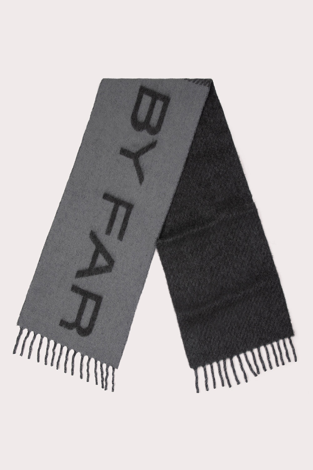 - Composition: 80% alpaca, 20% nylon - Double face - Stripes and BY FAR logo - Twisted fringes SIZE AND FIT - Length: 183 см - Width: 36 см