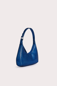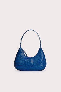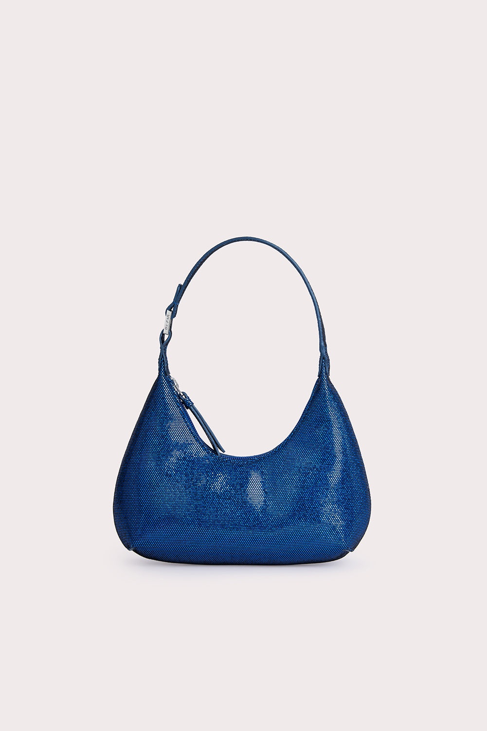 Sleek, curved lines characterise the structured design of the Amber bag. One of BY FAR’s signature shoulder bag styles is made of disco dot leather, developed especially for the brand. Finishing touches include zip closure, cotton lining and a logo-engraved buckle. DETAILS • Goat leather exterior • Leather strap • Silver-toned, branded hardware • Zip closure • Three inside pockets • Cotton lining • Made in Bulgaria CARE At BY FAR we carefully select all materials used for our products. Please handle with care for longer product life. • Avoid use in very humid conditions and against light coloured garments • Do not use solvents and excessive or prolonged rubbing, as this could damage the product • Clean with a specialist suede brush or refer to a specialist cleaning service • Store your BY FAR product in its original dust bag You can find more information at Product Care. SIZE AND FIT • Depth 6cm • Height 11cm • Width 24cm • Handle Drop 17cm • Strap Length 25cm