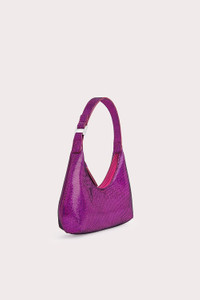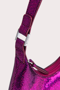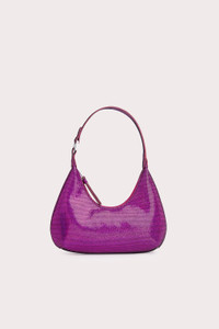 Sleek, curved lines characterise the structured design of the Amber bag. One of BY FAR’s signature shoulder bag styles is made of disco dot leather, developed especially for the brand. Finishing touches include zip closure, cotton lining and a logo-engraved buckle. DETAILS • Goat leather exterior • Leather strap • Silver-toned, branded hardware • Zip closure • Three inside pockets • Cotton lining • Made in Bulgaria CARE At BY FAR we carefully select all materials used for our products. Please handle with care for longer product life. • Avoid use in very humid conditions and against light coloured garments • Do not use solvents and excessive or prolonged rubbing, as this could damage the product • Clean with a specialist suede brush or refer to a specialist cleaning service • Store your BY FAR product in its original dust bag You can find more information at Product Care. SIZE AND FIT • Depth 6cm • Height 11cm • Width 24cm • Handle Drop 17cm • Strap Length 25cm