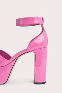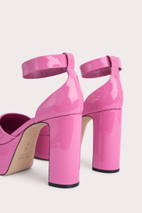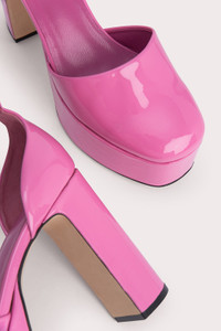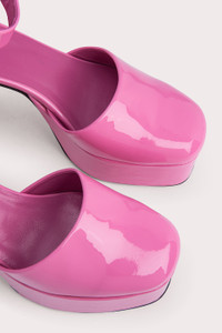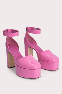 The Barb pump is set on a towering 12 cm block heel balanced by a sturdy platform. Made from BY FAR's signature patent leather, the bold silhouette is designed with a rounded toe and an adjustable ankle strap with hidden buckle fastening. DETAILS • Cowhide leather • Hidden buckle fastening • Block heel and platform covered in leather • Heel height: 12 cm • Front platform height: 5 cm • Rounded toe • Made in Portugal CARE At BY FAR we carefully select all materials used for our products. Please handle with care for longer product life. • Avoid overexposure to light, heat and humidity • Avoid contact with rough and/or abrasive surfaces • Do not use solvents and excessive or prolonged rubbing, as this could damage the product • Clean with a soft, dry cloth • Store your BY FAR product in its original dust bag You can find more information at Product Care. SIZE AND FIT Fits true to size. Italian/European sizing