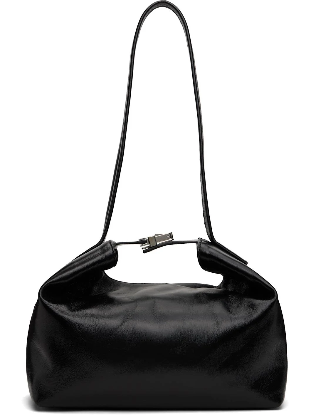 Crinkled lambskin shoulder bag. · Fixed shoulder strap · Press-release fastening at top · Magnetic closure · Faux-suede lining · Logo-engraved silver-tone hardware · H8" x W10" x D5.75" Supplier color: Black Lambskin. Made in Bulgaria 252289F048018
