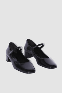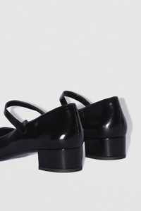 Glossed nappa leather Mary Jane pump with a 3.5 cm leather-covered block heel and a rounded square toe. Features a thin leather strap with an elasticated fastening. Made from LWG-certified leather. DETAILS - Leather Mary Jane pump - Leather-covered block heel - Heel height: 3.5 cm - Rounded square toe - Thin leather strap with elasticated fastening - Made in Portugal SIZE AND FIT Fits true to size. Italian/European sizing