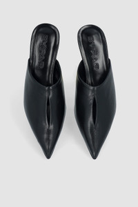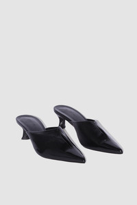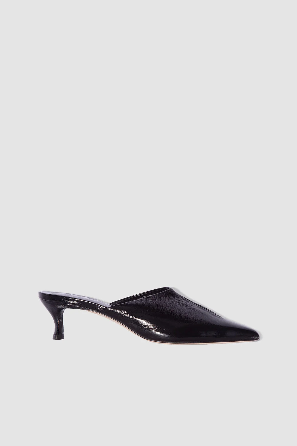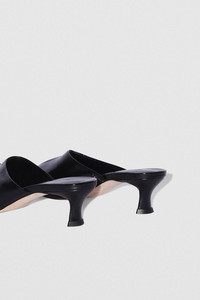 Glossed nappa leather mules with a 5 cm covered sculpted kitten heel and a delicate slit opening at the top. Finished with a pointed toe and made from LWG-certified leather. DETAILS - Leather mule - Covered sculpted kitten heel - Heel height: 5 cm - Delicate slit opening at the top - Pointed toe - Made in Bulgaria SIZE AND FIT Fits true to size. Italian/European sizing